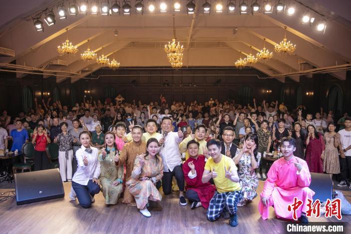 圖為演出結束后,貴林社相聲演員和觀眾合影。受訪者供圖