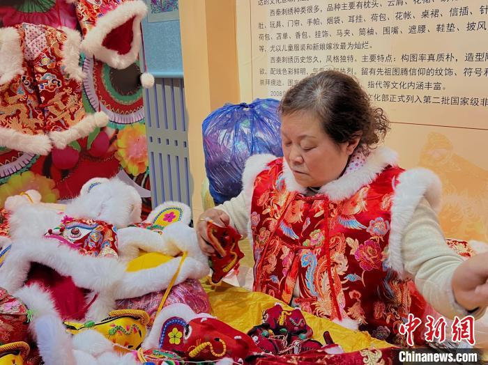 圖為西秦刺繡代表性傳承人李惠蓮正在制作“小老虎”?!±钜画[ 攝