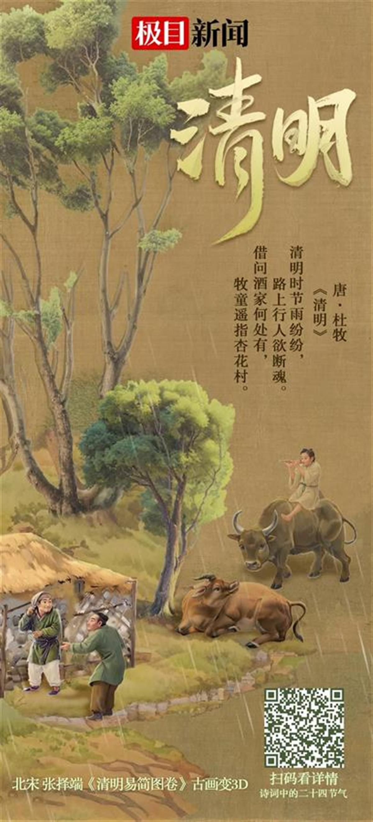 “清明時節雨紛紛,路上行人欲斷魂”,是人們耳熟能詳的清明詩句。清明下雨,在詩詞中描繪得多嗎?古代清明詩歌除了寫追憶親人,還會寫些什么內容?極目新聞記者專訪武漢大學文學院副教授鐘志輝為讀者解析清明古詩詞。