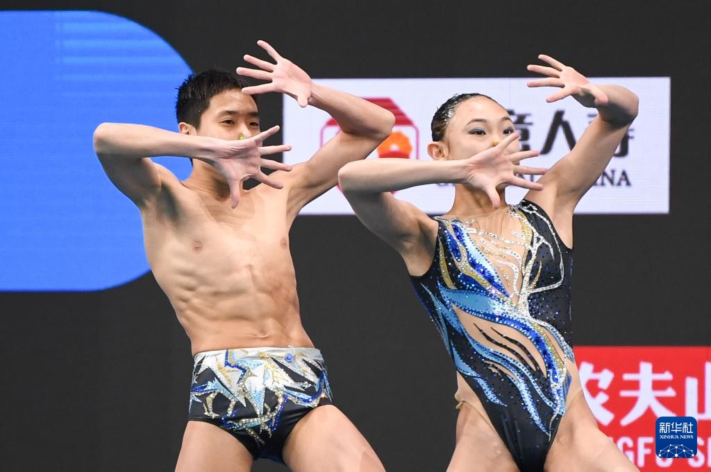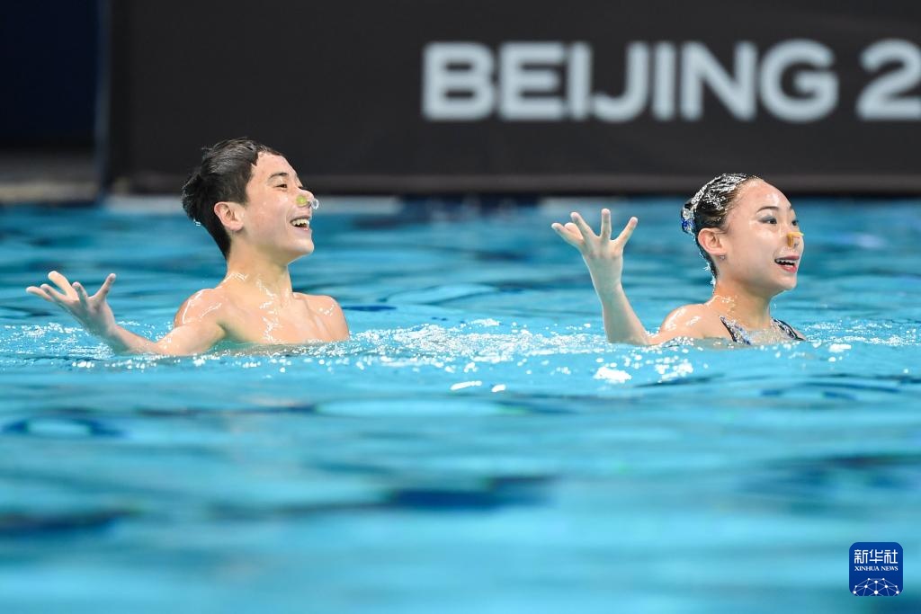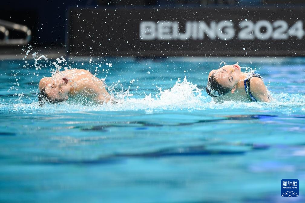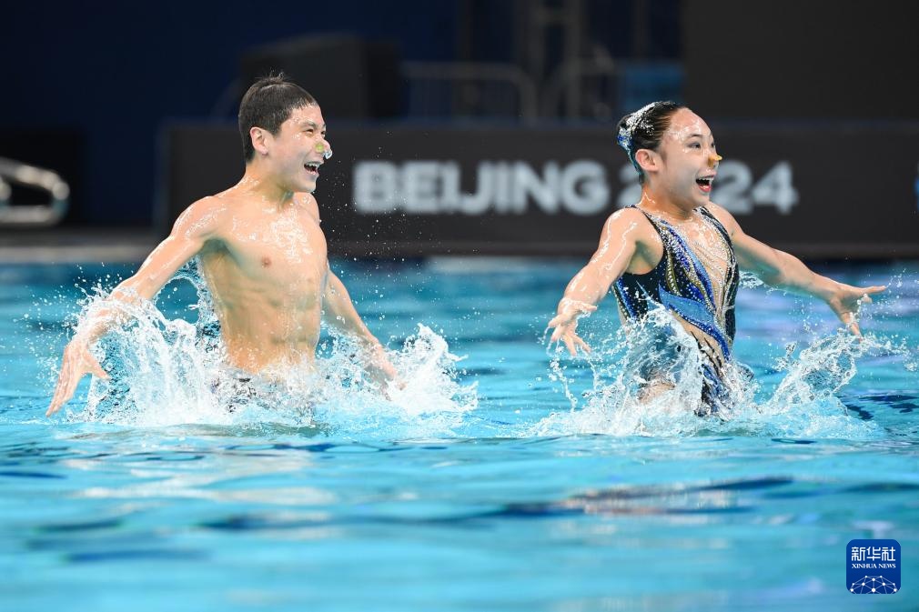 當日,在2024年花樣游泳世界杯(北京站)混合雙人技術自選比賽中,中國組合季荷悅/郭牧也以206.8800分的成績奪得冠軍。
