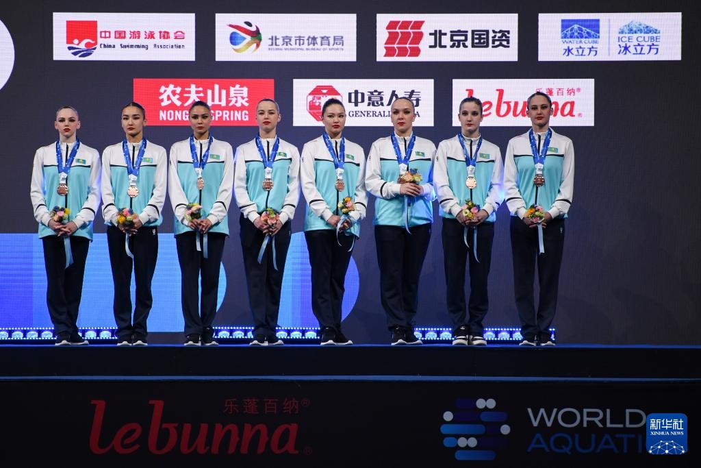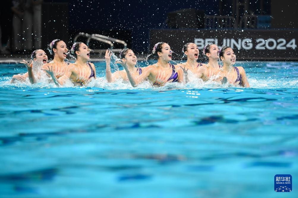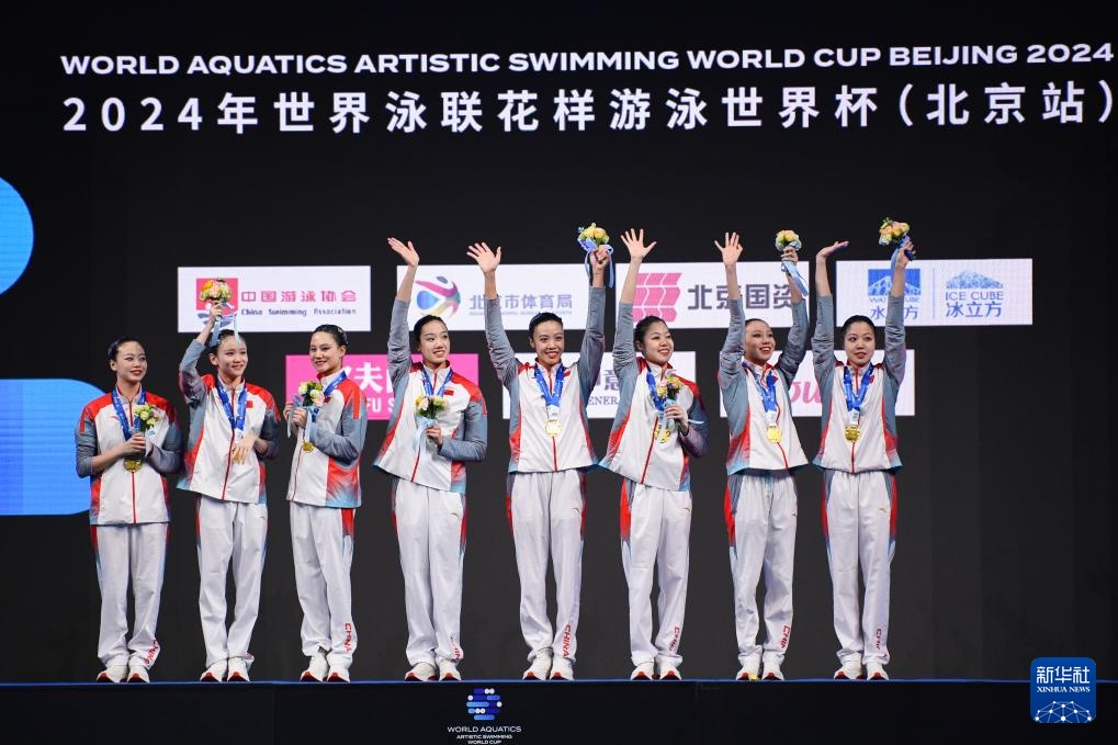 當日,在2024年花樣游泳世界杯(北京站)集體技術自選比賽中,中國隊以250.2686分的成績奪得冠軍,澳大利亞隊以229.1117分的成績獲得亞軍,哈薩克斯坦隊以208.6020分的成績獲得季軍。