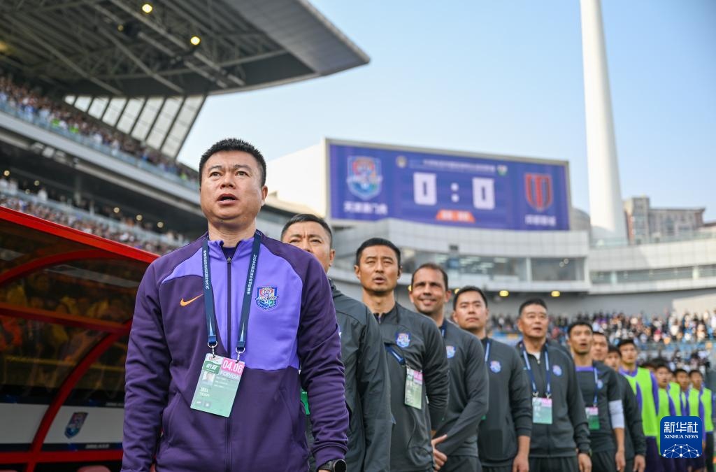 4月6日,成都蓉城隊主教練徐正源在比賽開始前。新華社記者 孫凡越 攝