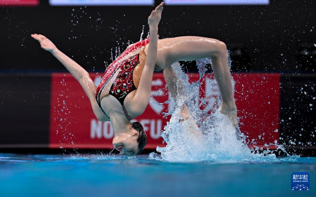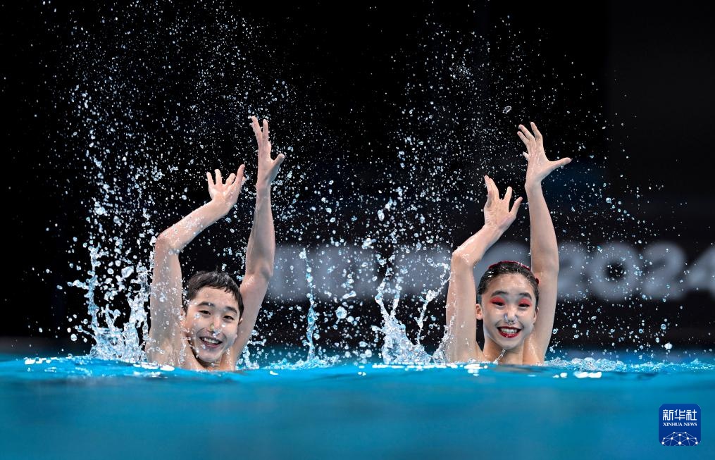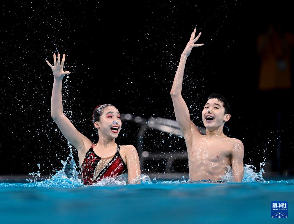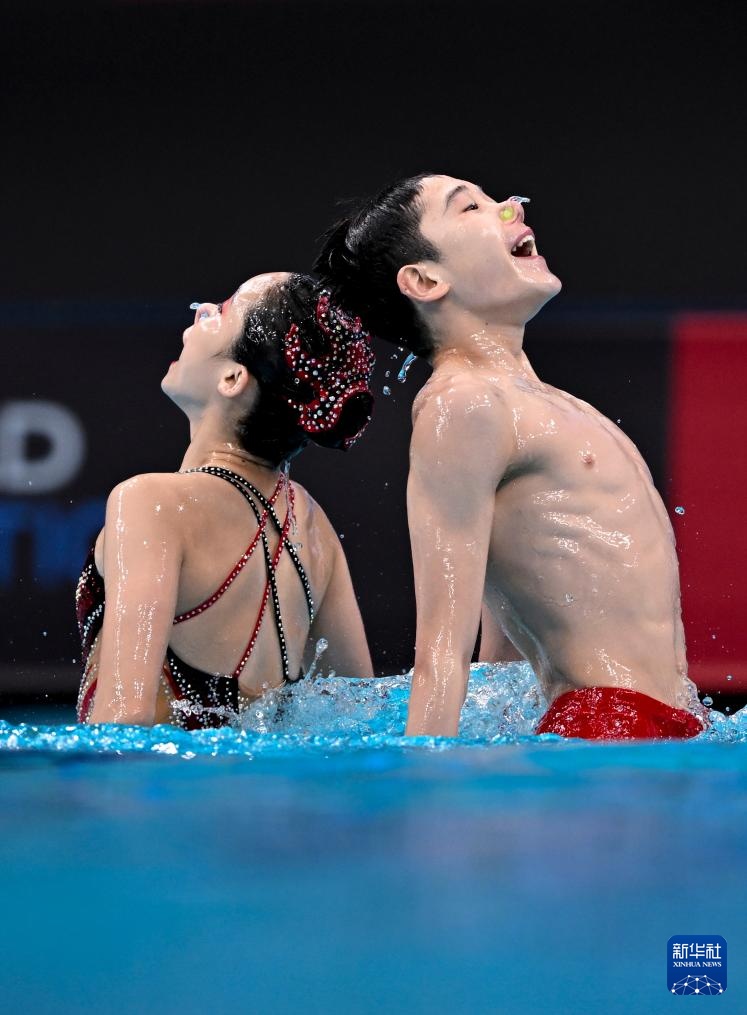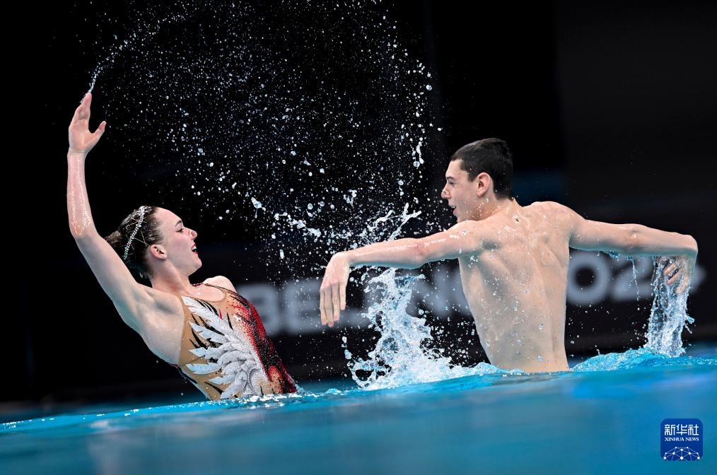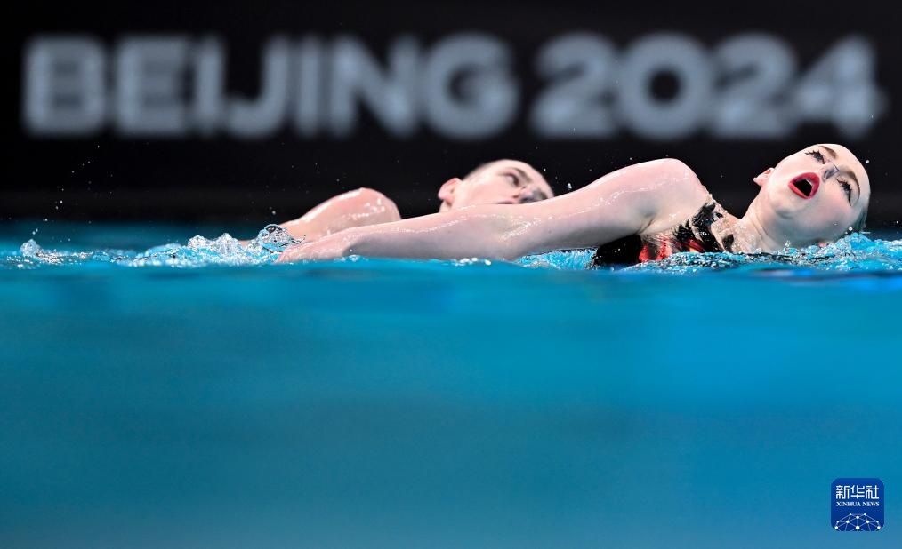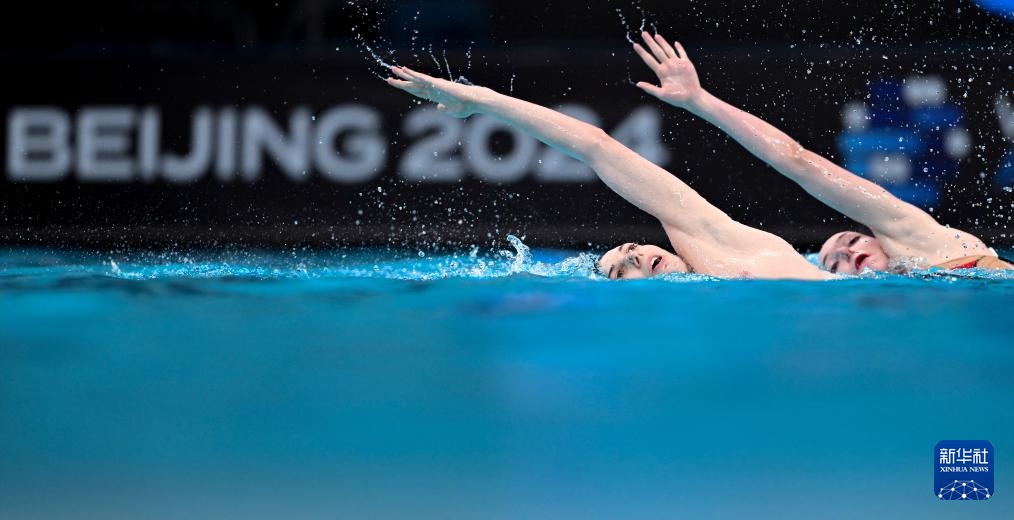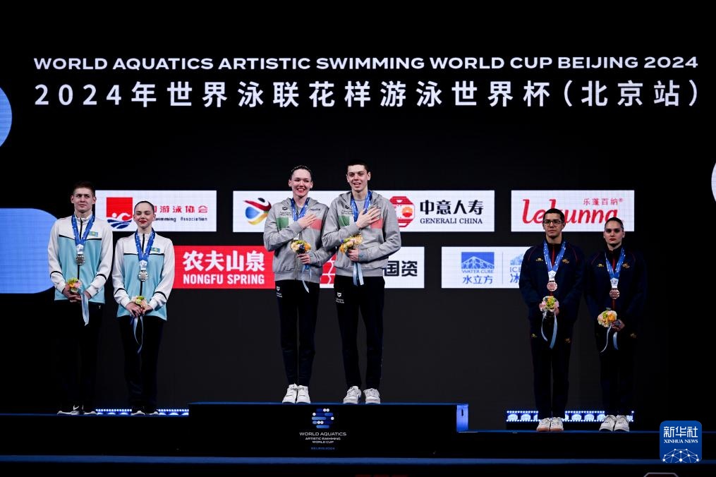 當日,2024年花樣游泳世界杯(北京站)混合雙人自由自選決賽在國家游泳中心“水立方”舉行。