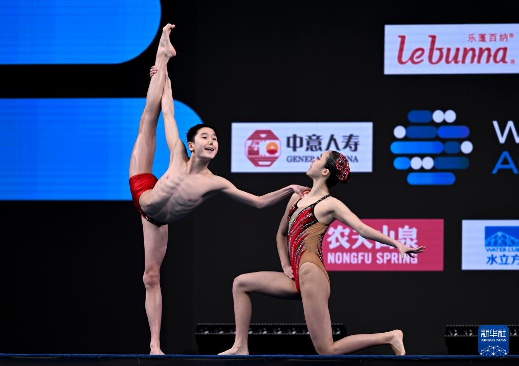 4月7日,西班牙組合霍爾迪·卡塞雷斯·伊格萊西亞斯/朱迪絲·卡爾沃·雷克納(上)在比賽中。最終他們以151.5945分的成績獲得季軍。新華社記者 夏一方 攝