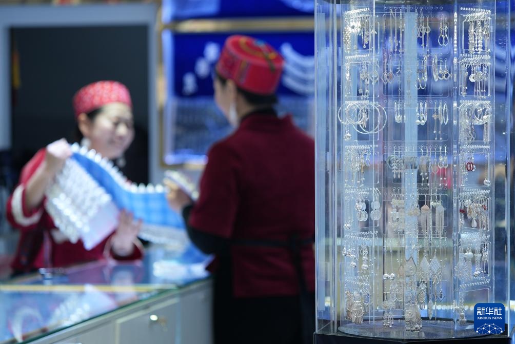 4月8日,顧客在貴州省黃平縣新州鎮文星社區一家銀飾店選購銀飾。