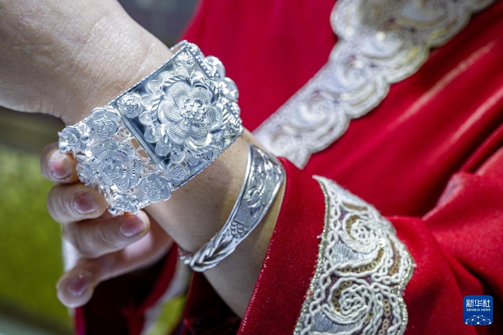當地銀匠依舊保持著手工制作的傳統,經過熔銀、鍛打、拉絲、燒制、雕花、打磨、拋光等工序,制作出款式豐富、造型精美的銀飾,人們在逢年過節或迎親嫁娶等大型活動時都會穿戴在身上,盛裝出門,成為一道又一道靚麗的風景。