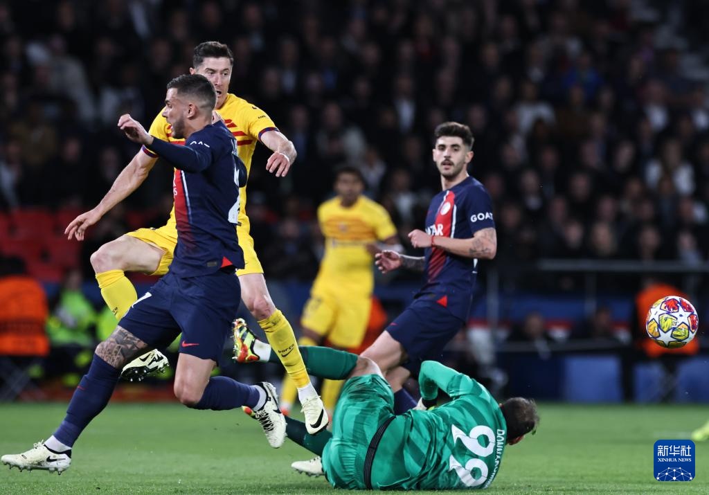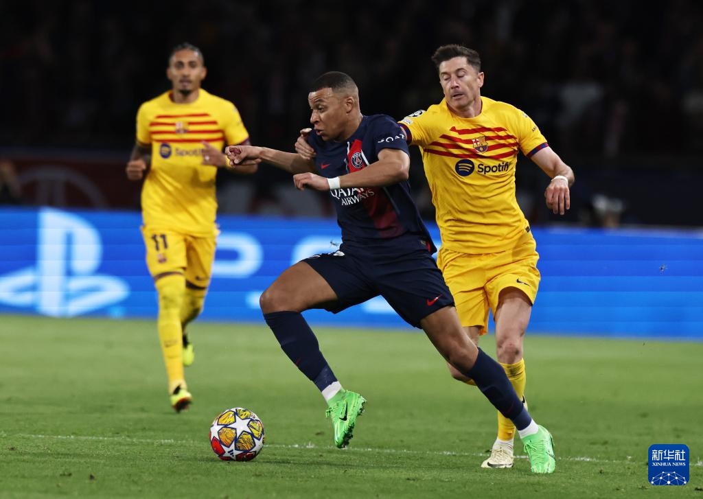 當日,在2023-2024賽季歐洲足球冠軍聯賽四分之一決賽首回合比賽中,法甲巴黎圣日耳曼隊主場2比3不敵西甲巴塞羅那隊。