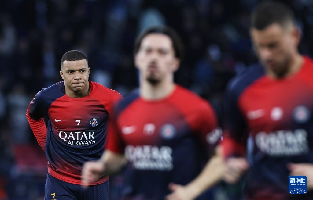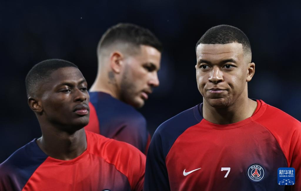 4月10日,巴黎圣日耳曼隊球員姆巴佩(左)在比賽前熱身。新華社記者 高靜 攝