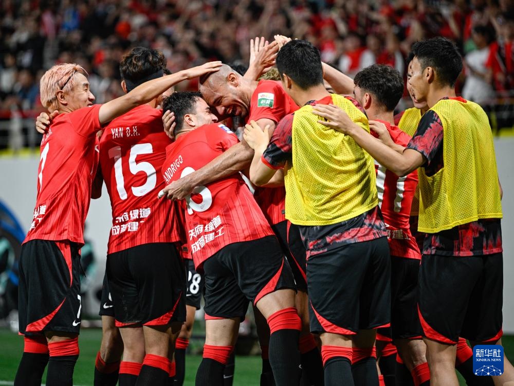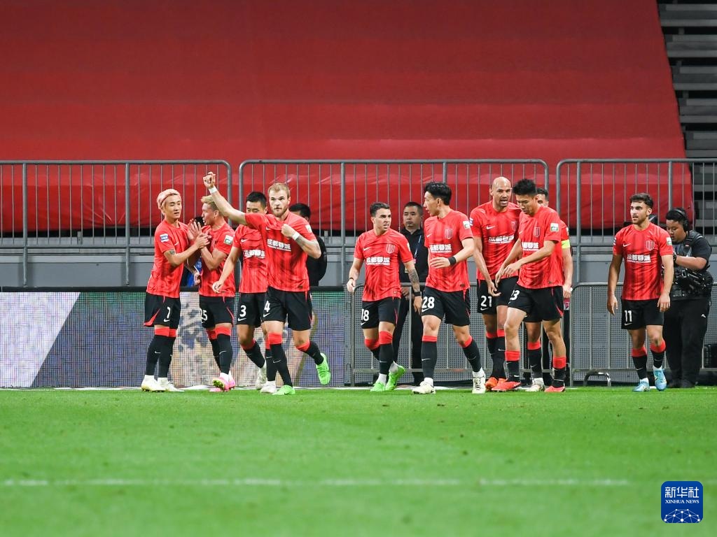 4月10日,成都蓉城隊球員慶祝進球。新華社記者 王曦 攝