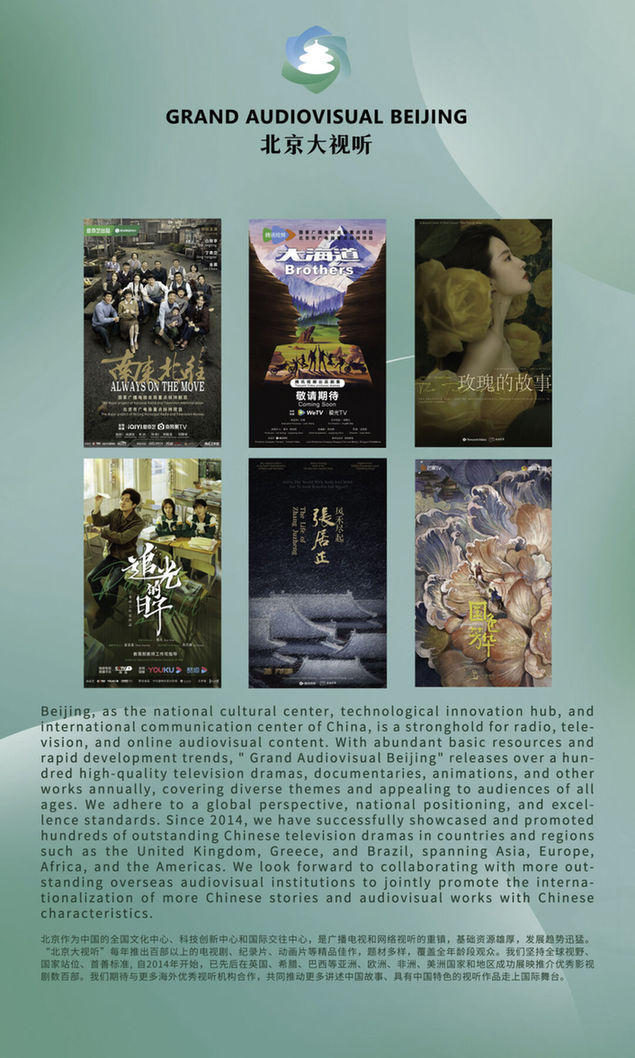 北京市廣播電視局于2023年建立“北京大視聽”精品創(chuàng)作工作機制,已經(jīng)接連推介了百部以上文藝精品項目,此次戛納電視節(jié)期間,重點展出了《歡迎來到麥樂村》《南來北往》《追光的日子》《大海道》《玫瑰的故事》《風(fēng)禾盡起張居正》《國色芳華》7部電視劇作品。