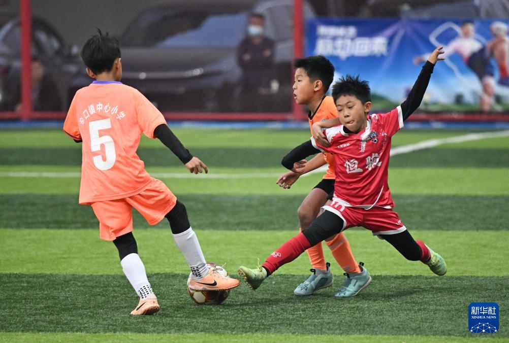 在天津市足協青訓基地,天津市足協青訓中心青少年球員進行對抗訓練(4月11日攝)。新華社記者 孫凡越 攝