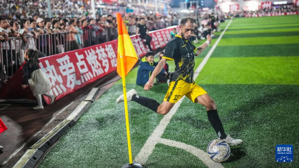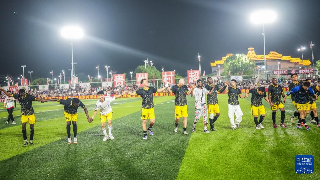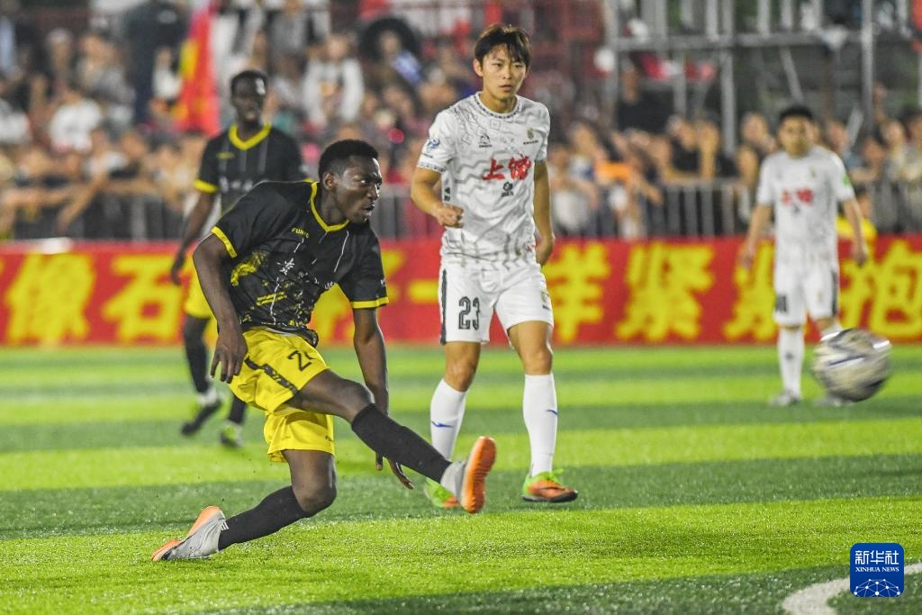 當日,在貴州省黔東南苗族侗族自治州榕江縣“村超”足球場,貴州大學國際學生足球隊對陣上饒渣渣灰江西米粉足球隊。
