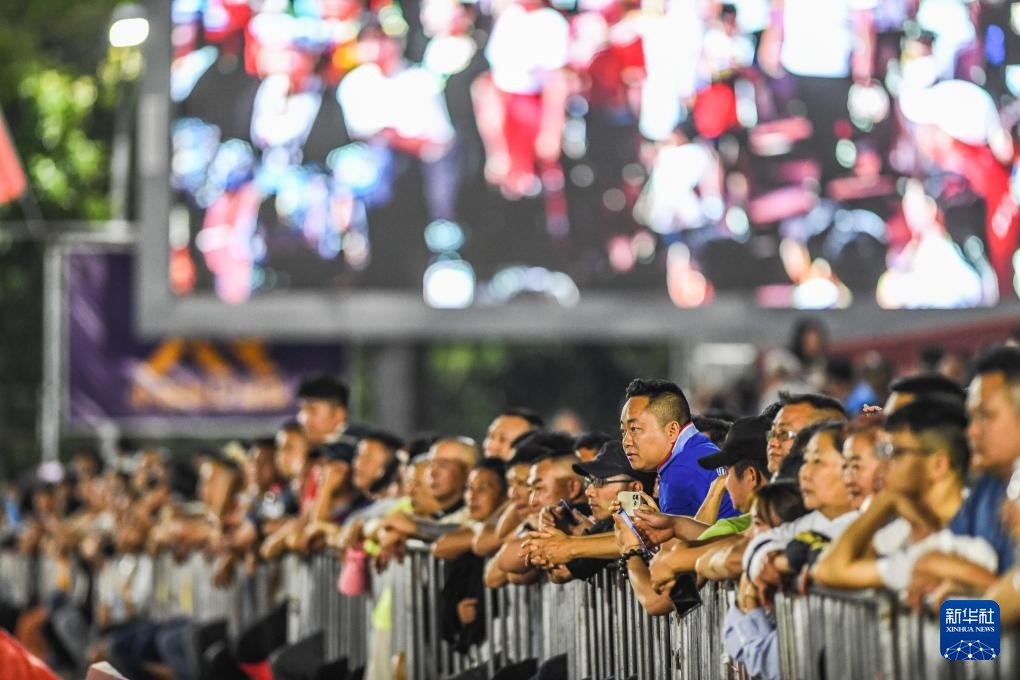 4月13日,觀眾在“村超”足球場邊觀看比賽。新華社記者 陶亮 攝