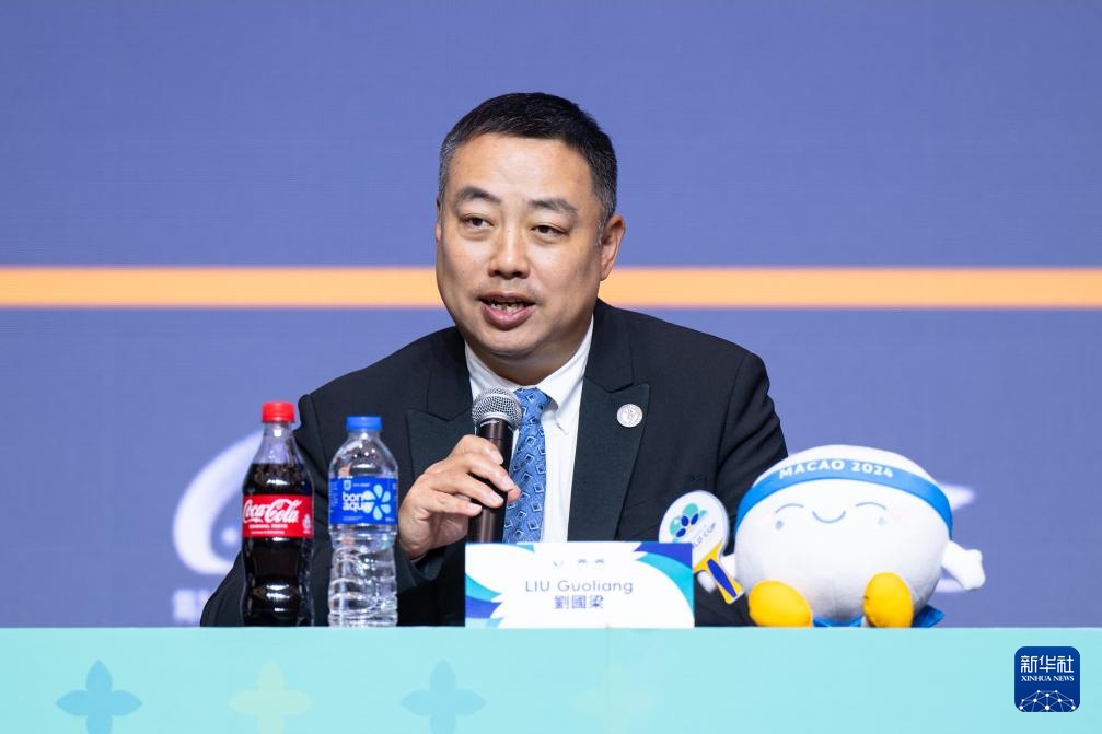 4月14日,澳門特別行政區政府體育局局長潘永權在新聞發布會上發言。新華社記者 張金加 攝
