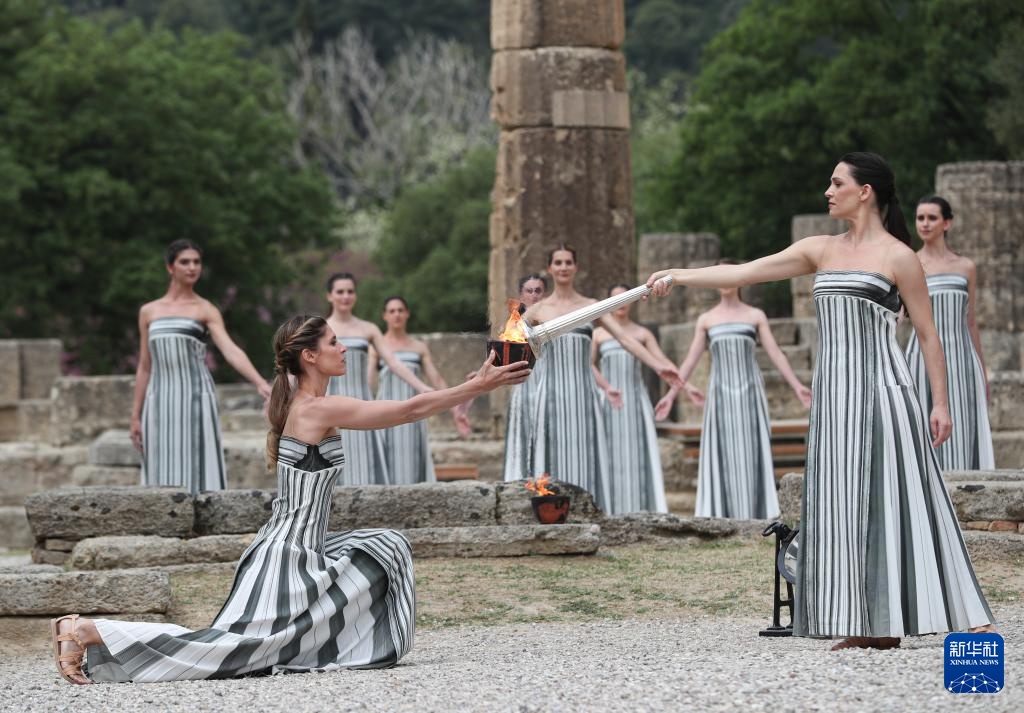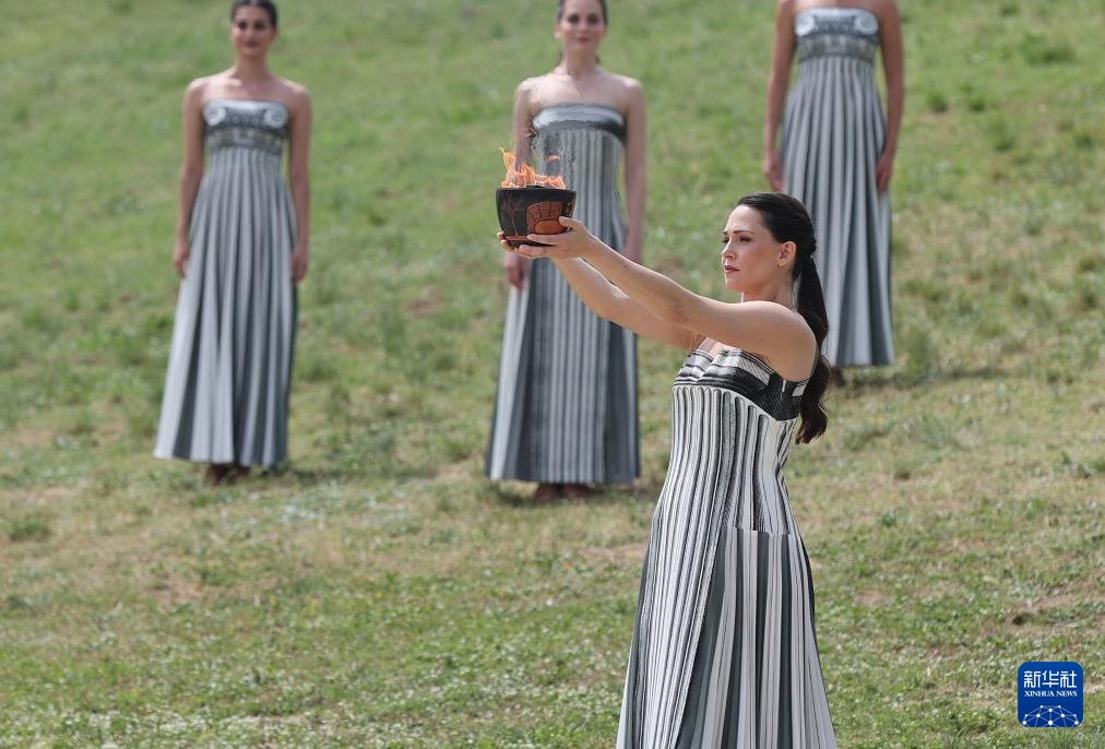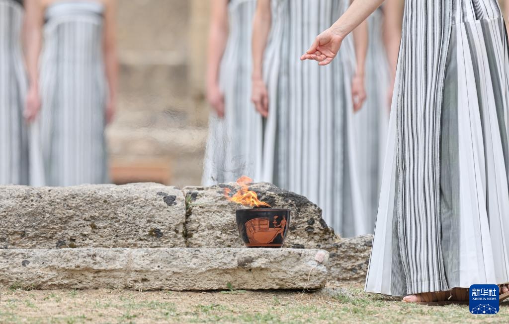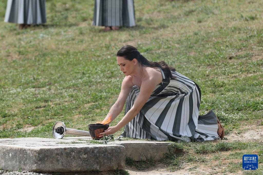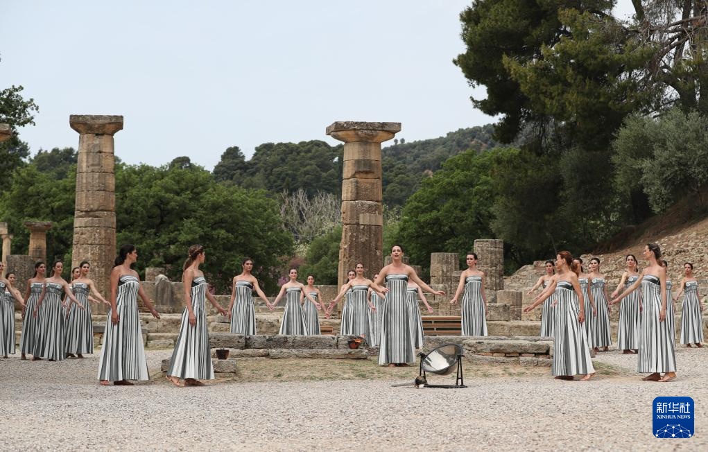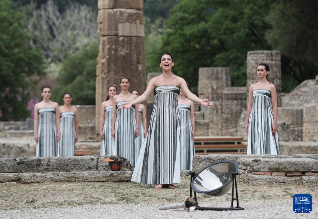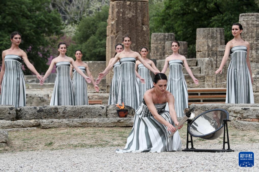 當(dāng)日,2024年巴黎奧運(yùn)會(huì)圣火火種采集儀式在希臘伯羅奔尼撒半島的古奧林匹亞遺址舉行。