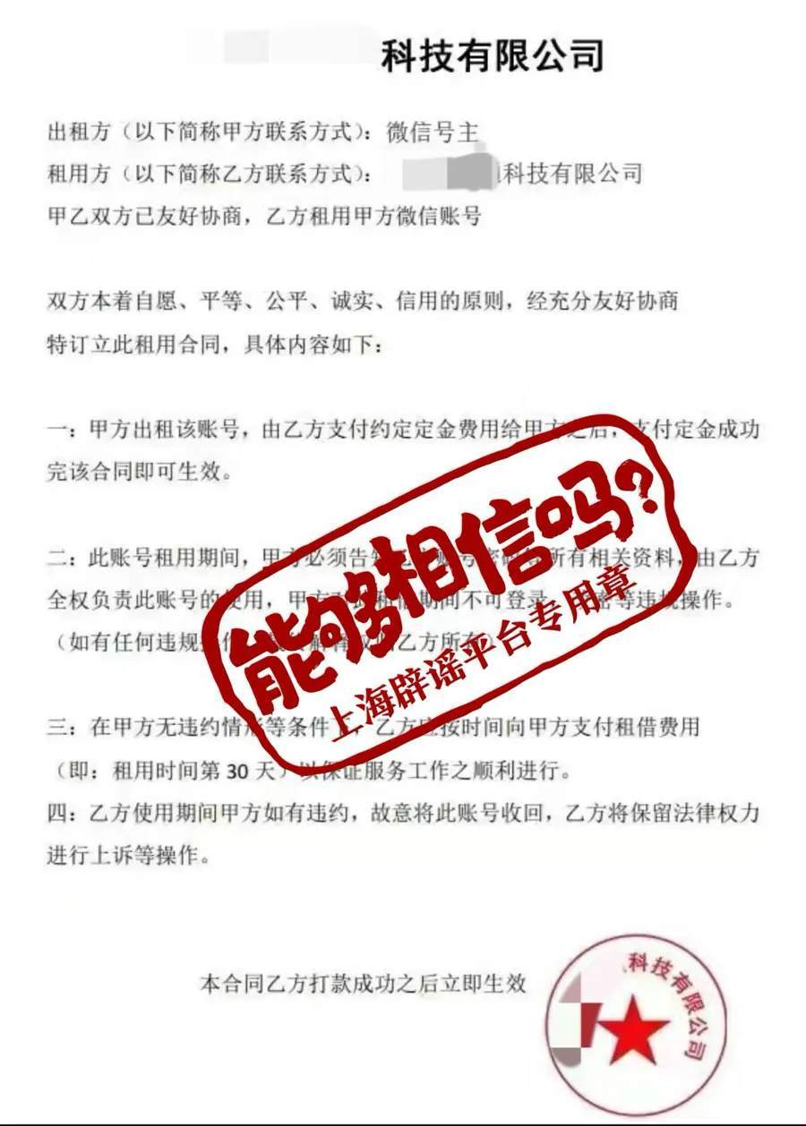 上海市公安局官方微信號“警民直通車上海”揭露過“租號”背后的不法行為,包括實施詐騙、惡意營銷、謠言誹謗、拉客招嫖、招攬賭博等;還有的賬號淪為不法分子洗錢、移贓的違法工具。