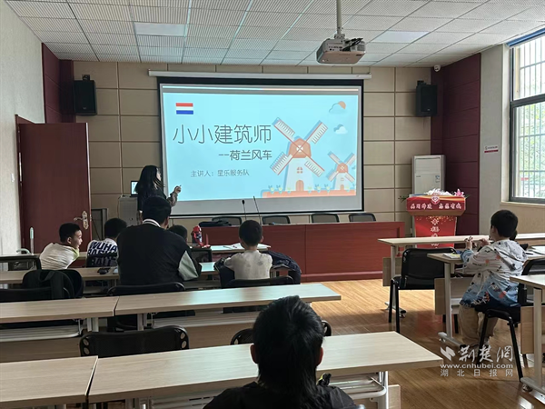 活動在社區二樓科普園地展開,來自武漢理工大學星樂服務隊的志愿者結合生動形象的PPT幻燈片,向孩子們介紹了荷蘭風車歷史,并巧妙利用積木拼圖,演示風車葉片受風力作用而轉動的基本原理。孩子們聽得聚精會神,不時與志愿者互動交流,現場學習氛圍濃厚。