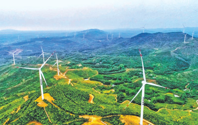 行駛在高速公路上,只見遠處的白色風力發電機葉片一直在旋轉。“我們這里有3座風電場和1座風光一體發電站,能滿足示范區內所有居民的用電。”孫朝霞說。