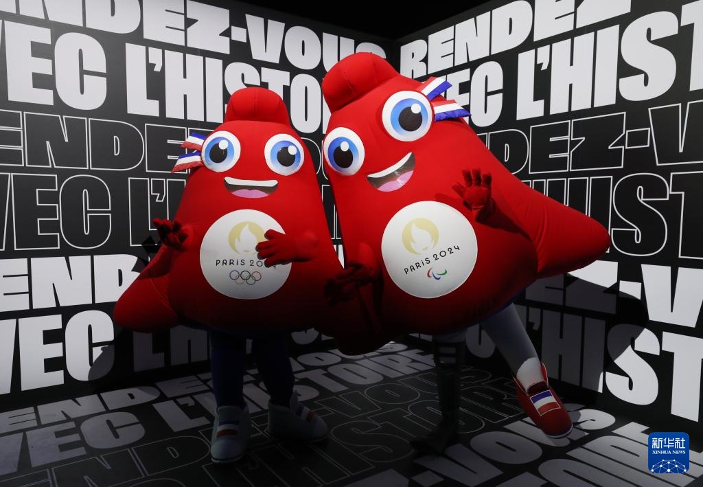 這是4月17日拍攝的慶祝活動上的巴黎奧運會和殘奧會吉祥物。新華社記者 高靜 攝