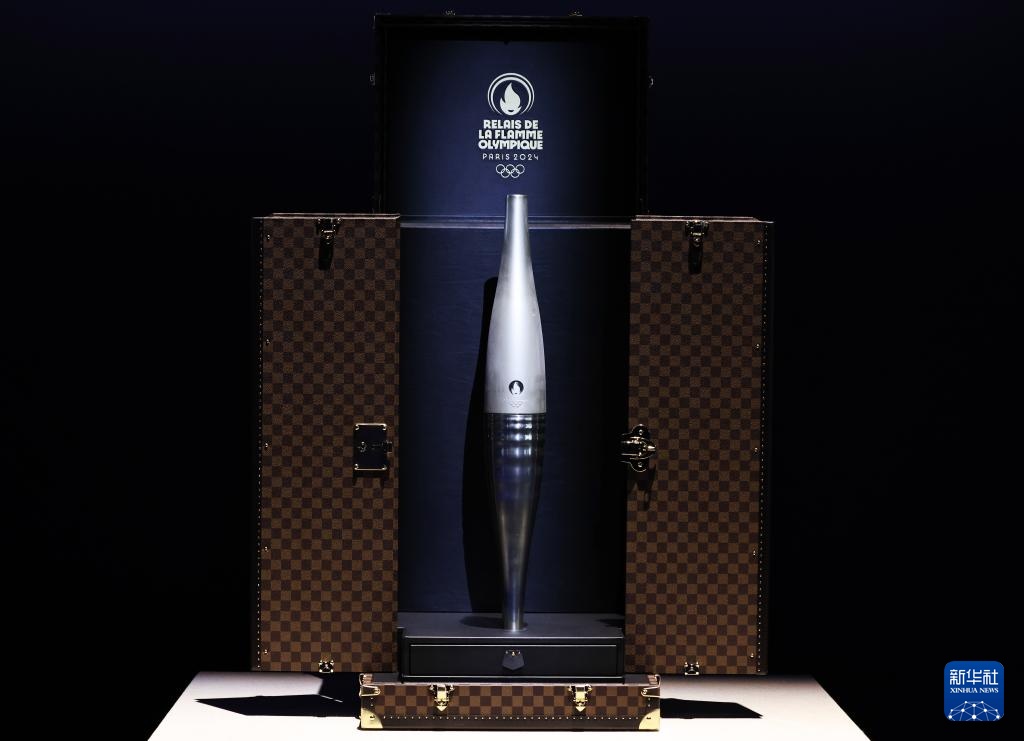 這是4月17日拍攝的慶祝活動中展示的巴黎奧運會火炬。新華社記者 高靜 攝