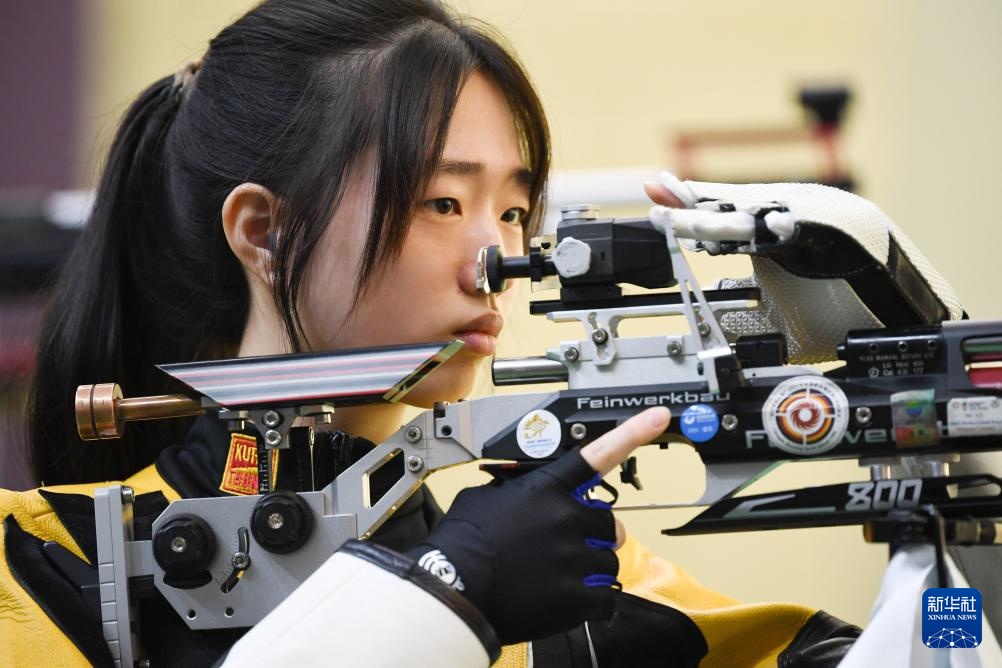 4月18日,黃雨婷在10米氣步槍個人訓練賽決賽中。新華社記者 鞠煥宗 攝