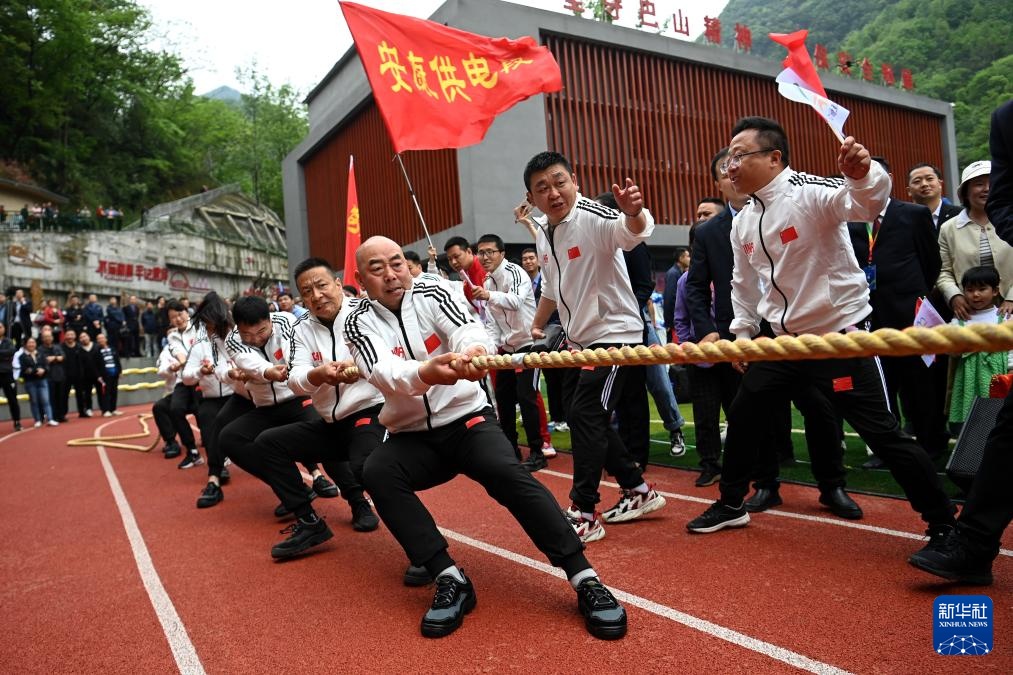 4月18日,參賽選手在運動會上參加拔河比賽。