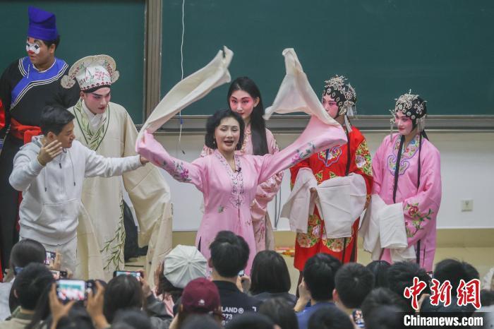 今年3月,南昌大學《贛劇藝術鑒賞》課堂上,國家一級演員、南昌大學二級教授、國家級非物質文化遺產贛劇傳承人陳俐正在為學生們講解贛劇里耍花槍、投水袖等動作。隨后她親自示范,先將花槍高高拋起、再迅速接住、然后回眸轉身,整套動作一氣呵成、十分優雅。