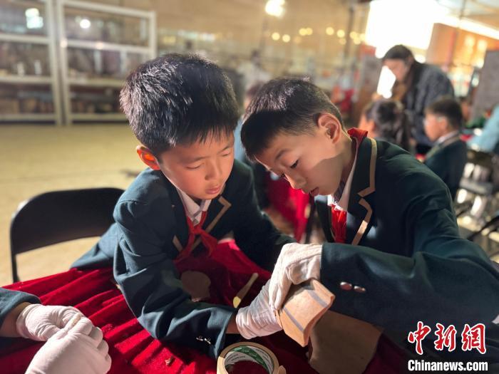 小學生們體驗“文物修復”。大河村遺址博物館供圖