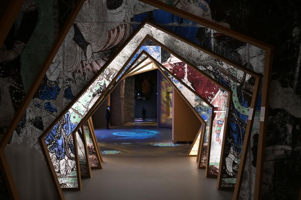 2023年12月9日,中國國家博物館的“華彩萬象——石窟藝術沉浸體驗”展。新華社記者 金良快 攝