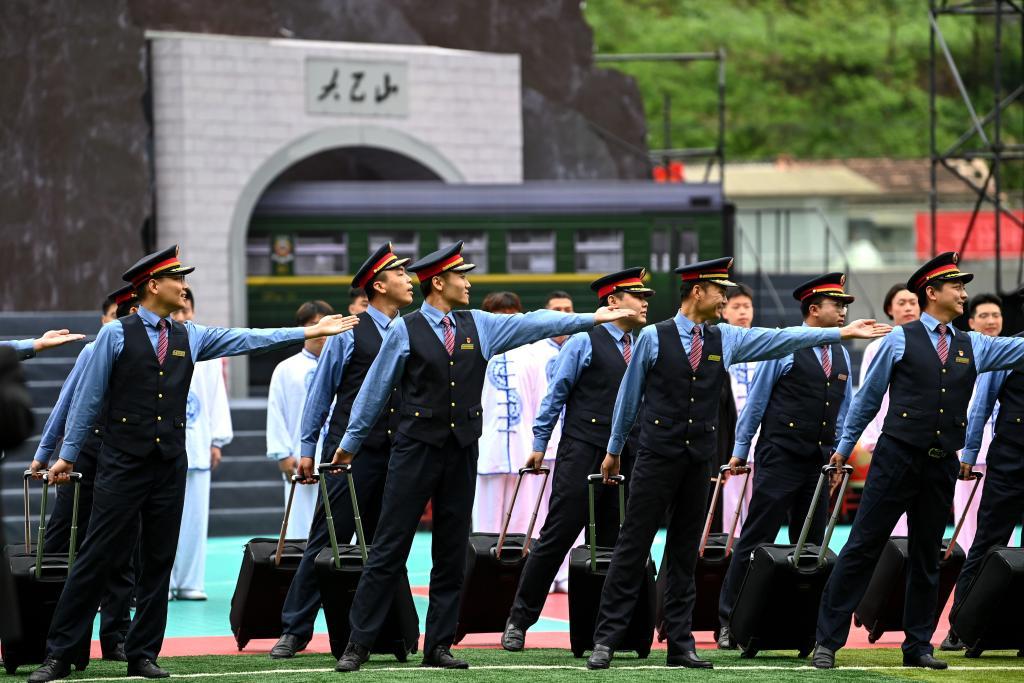 4月18日,鐵路職工在開幕式上表演。新華社記者 鄒競一 攝