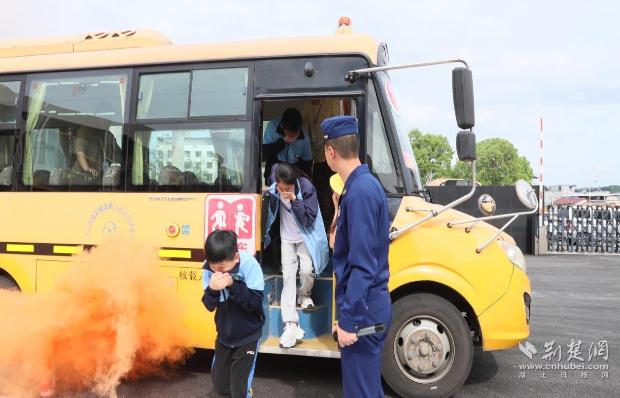 荊楚網(湖北日報網)消息(通訊員 朱燕林 黎丹)為強化校車消防安全管理,提升學校師生應對校車突發火災事故時的逃生自救能力,4月18日,咸寧市消防救援支隊通城大隊聯合校車公司走進轄區第一小學開展校車火災事故應急救援演練及消防安全知識培訓活動。校車公司工作人員、部分乘車學生參與演練,另有500余名學校師生在現場觀看。