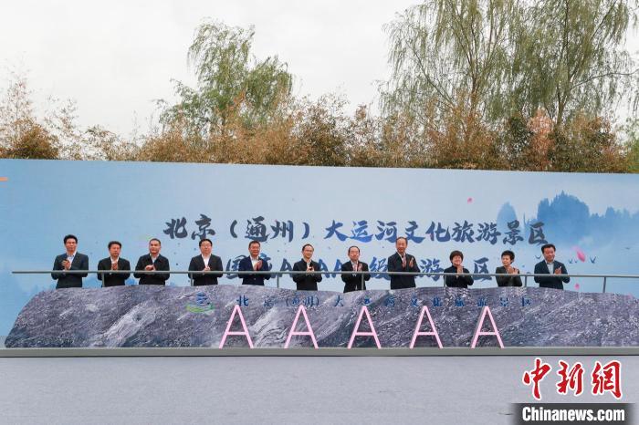 在開幕儀式上,與會嘉賓為北京(通州)大運河5A級文化旅游景區揭牌。近年來,北京市通州區立足城市副中心文化旅游主導功能,深入挖掘和豐富大運河文化內涵,以大運河文化帶建設為契機,圍繞大運河森林公園、運河公園、西海子公園、燃燈塔和周邊古建筑群等四個區域全力打造集休閑、體驗、度假、購物于一體的北京中軸線以東首個5A級旅游景區。