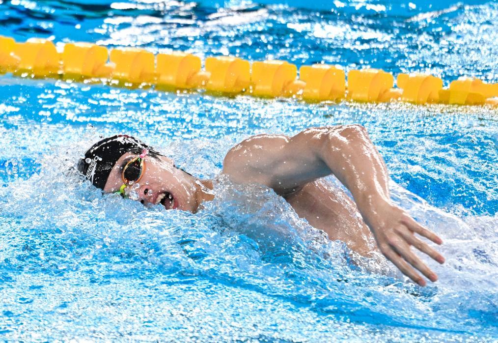 男子400米自由泳決賽爭奪十分激烈,前三名選手的差距都在毫厘之間,潘展樂在最后50米展現了極強的爆發力,以3分45秒58奪得冠軍,張展碩屈居第二,費立緯名列第三。