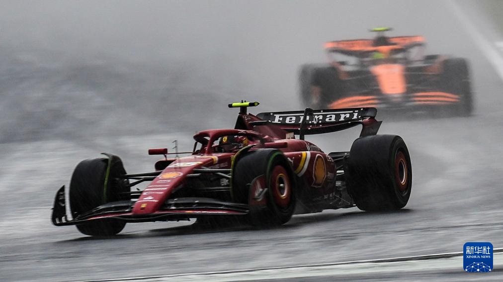 4月19日,法拉利車隊西班牙車手賽恩斯(前)在比賽中。他最終排名第五。新華社記者 夏一方 攝