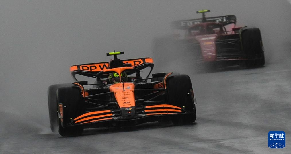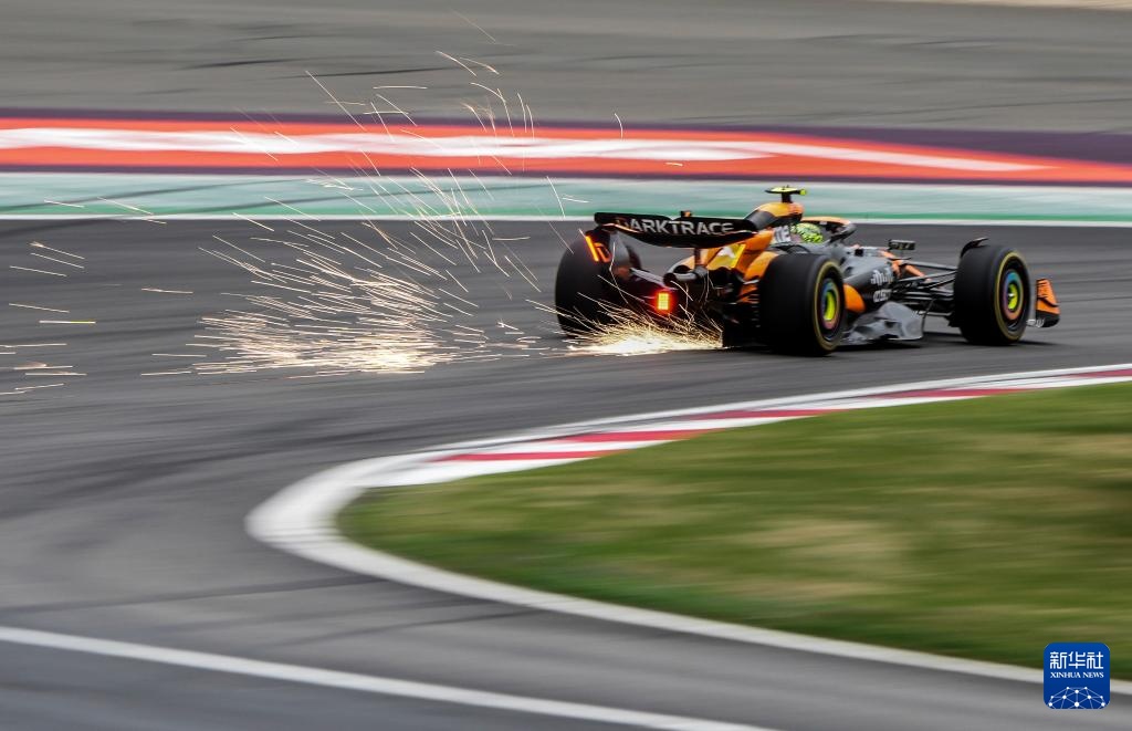 4月19日,邁凱倫車隊英國車手諾里斯在比賽中。他最終排名第一。新華社記者 賀長山 攝