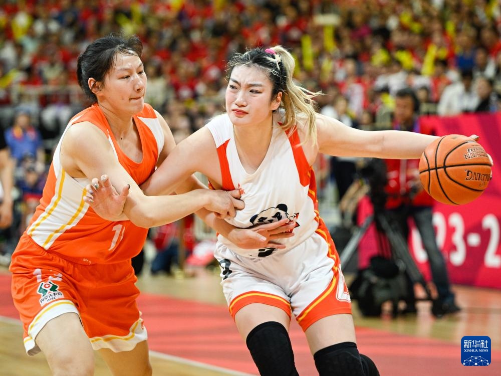 4月19日,四川遠達美樂隊球員王思雨(中)在比賽中突破。新華社記者 王曦 攝