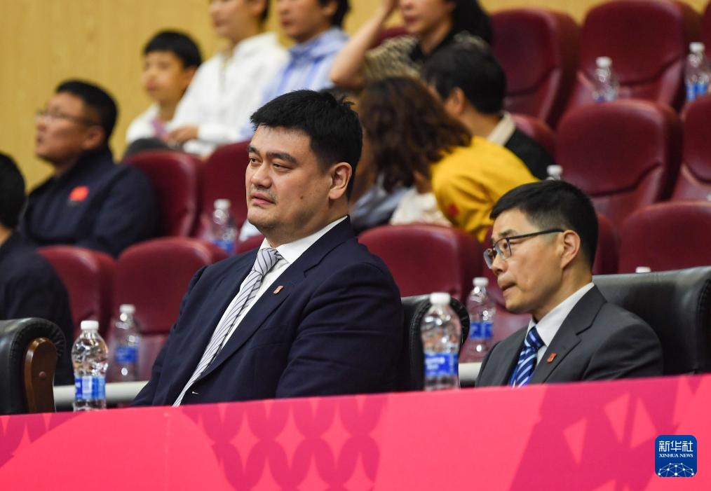 4月19日,中國籃球協會主席姚明(左)在場邊觀戰。新華社記者 王曦 攝