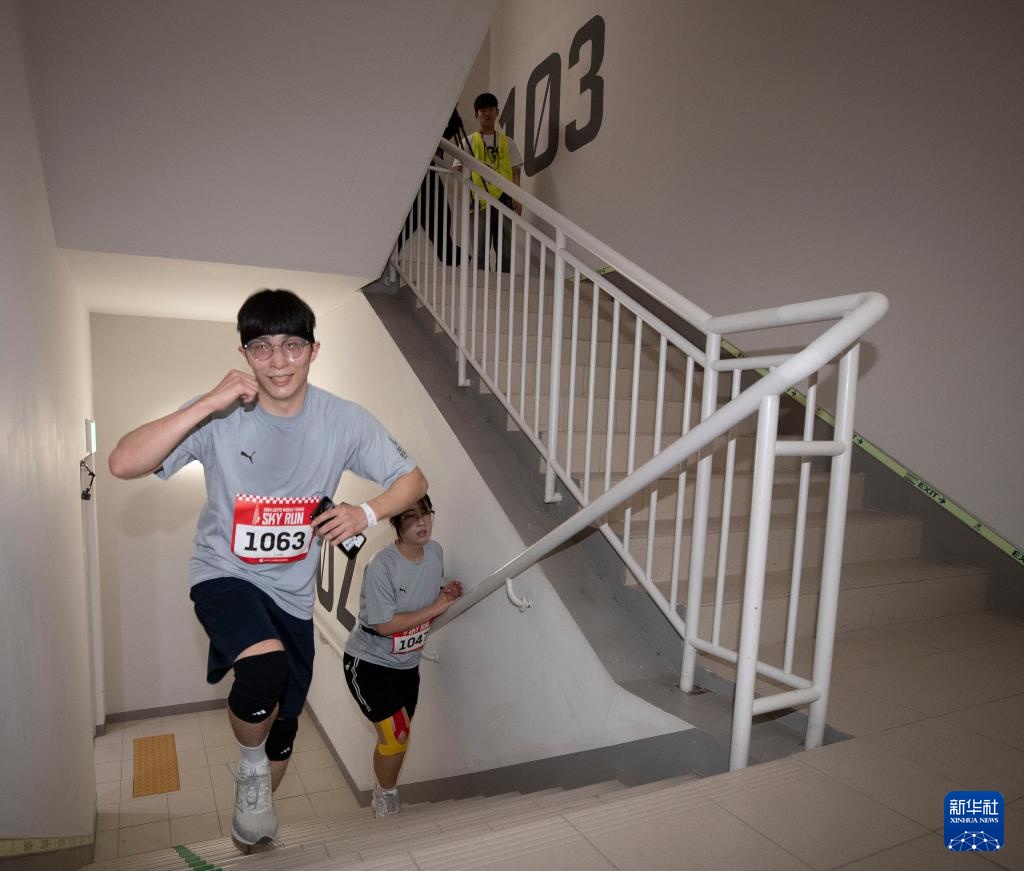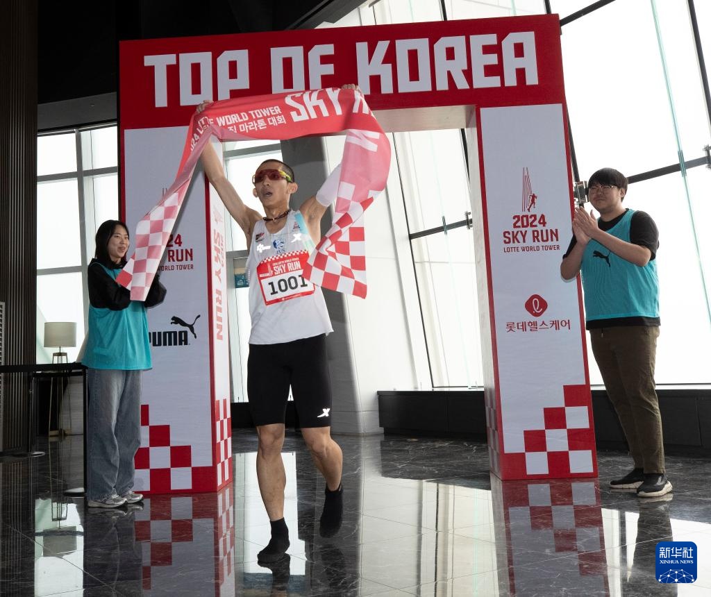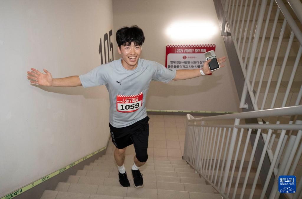 當(dāng)日,2024樂天世界塔垂直馬拉松比賽在韓國首爾舉行。2200多名參賽選手需要從樂天世界塔1層攀登至123層,共計2917級臺階。