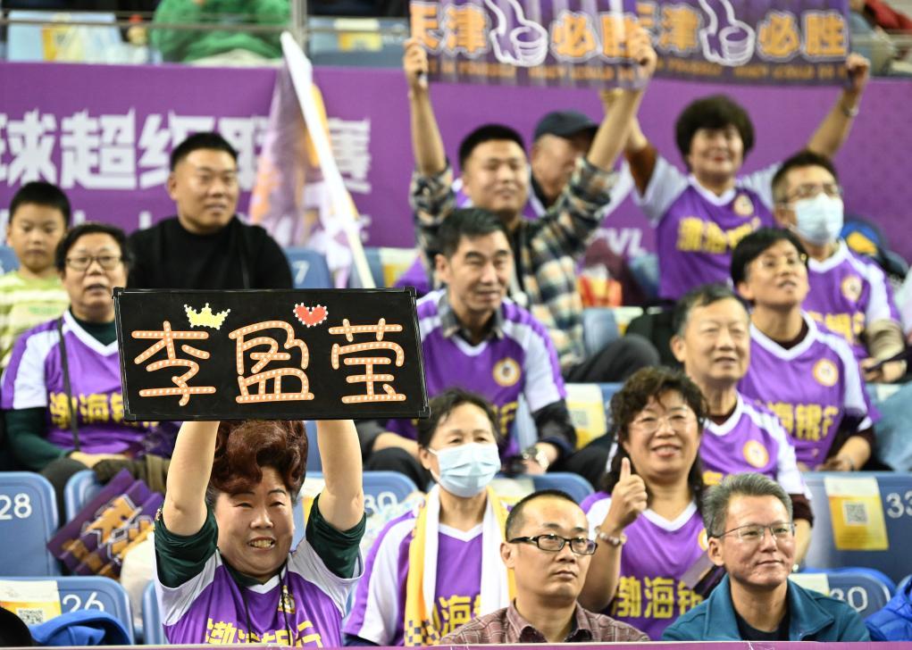 2023年11月7日,天津渤海銀行隊球迷在看臺為球隊加油。新華社記者 孫凡越 攝
