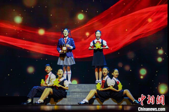4月20日晚,在廣西省立藝術(shù)館,小演員們表演合唱《那一束光》。 周利朔 攝