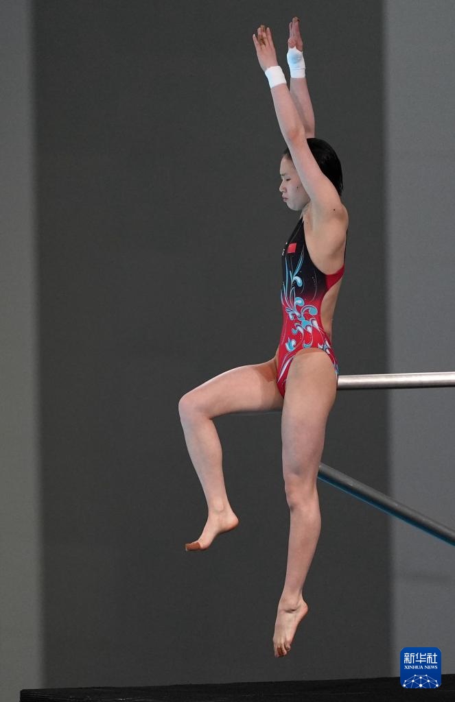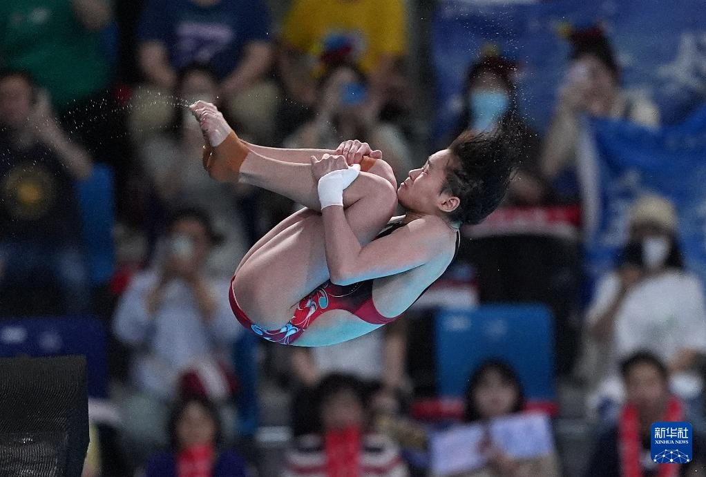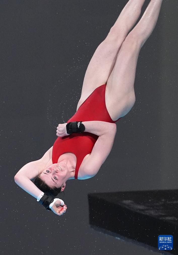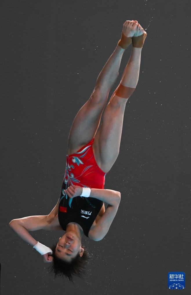 4月21日,陳芋汐在完成最后一跳后向觀眾致意。