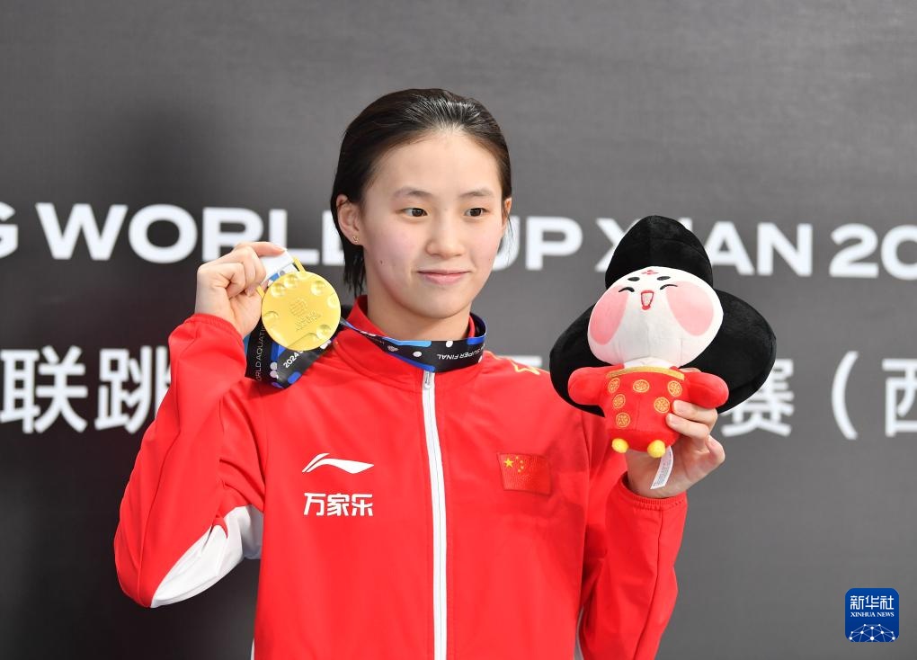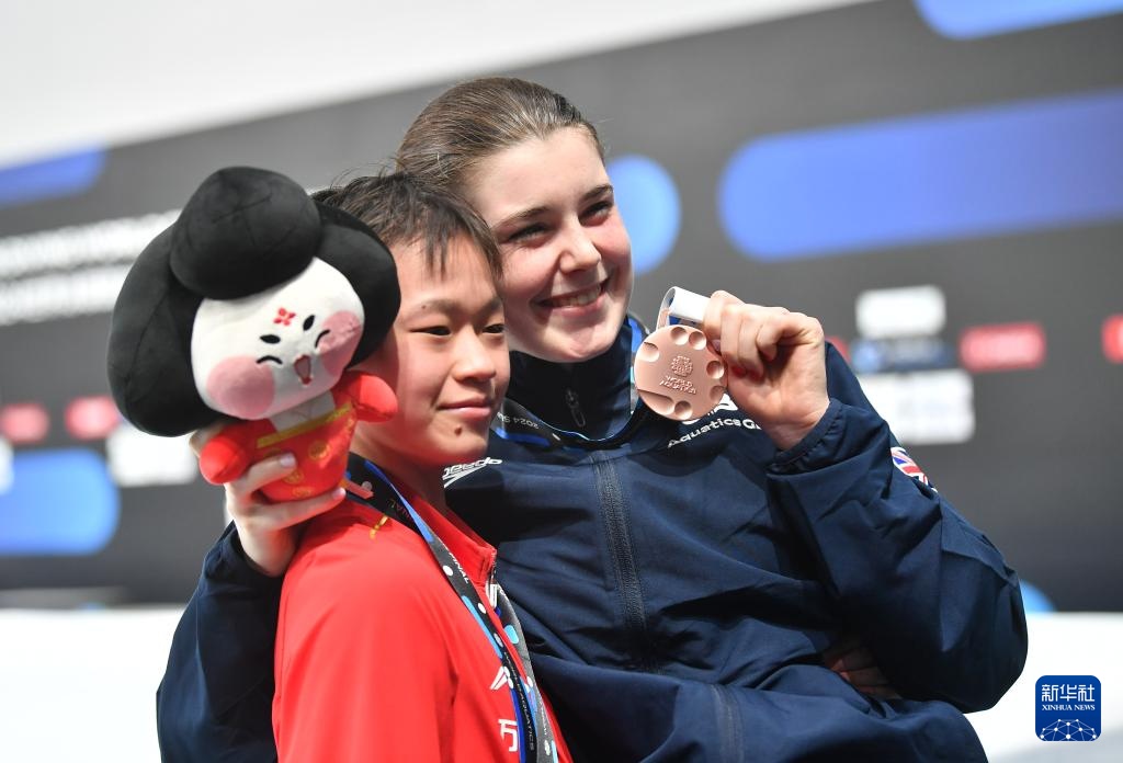 當(dāng)日,在陜西西安舉行的2024年跳水世界杯總決賽女子10米臺決賽中,中國選手陳芋汐、全紅嬋分獲冠、亞軍,英國選手斯彭多利尼·西里埃獲得季軍。