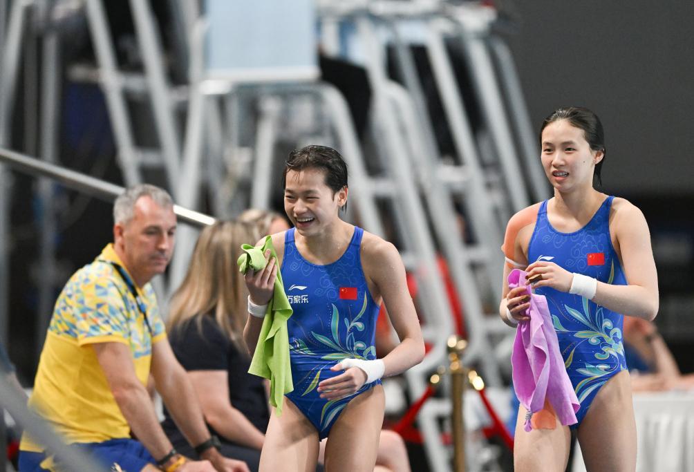 全紅嬋、陳芋汐在女子10米臺比賽后