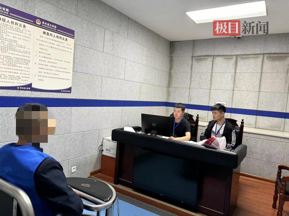民警對犯罪嫌疑人洪某某進(jìn)行審訊