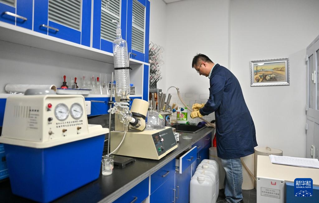 高學淼在實驗室內調配顯色劑,準備后續實驗使用(4月22日攝)。