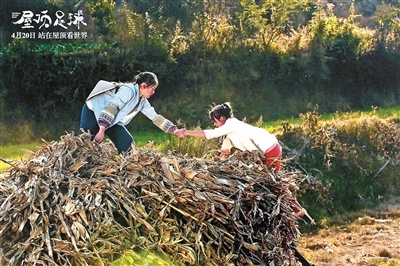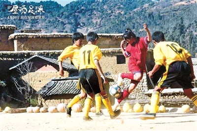 而對于“屋頂足球”的設定,飛魚說:“其實并沒有真實的故事來參照,我在前期勘景時,輾轉各地,來到了云南寶山石頭城的江邊的一個村寨,當時,有幾個小孩兒往江里踢青的核桃果,我就跟他們比賽,看誰踢得遠。后來,我就想起我小時候放學之后,看到路邊有石子和易拉罐,忍不住就上去踢兩腳的這種心情,我想把這個元素可以加入電影中。所以,電影中,會有孩子們踢石榴、踢柚子的生動情景。然后,我又沿路走上了屋頂,看到這里群山環繞,江水聲、小孩子嬉鬧的聲音和牛羊的聲音混在一起,我就有了一個設想——如果能夠在屋頂上踢足球一定很有意思,可以借著足球運動把獨特的地理環境、山水人文氛圍表現出來。可以說,這幾件事請,就讓這部電影初具雛形。”