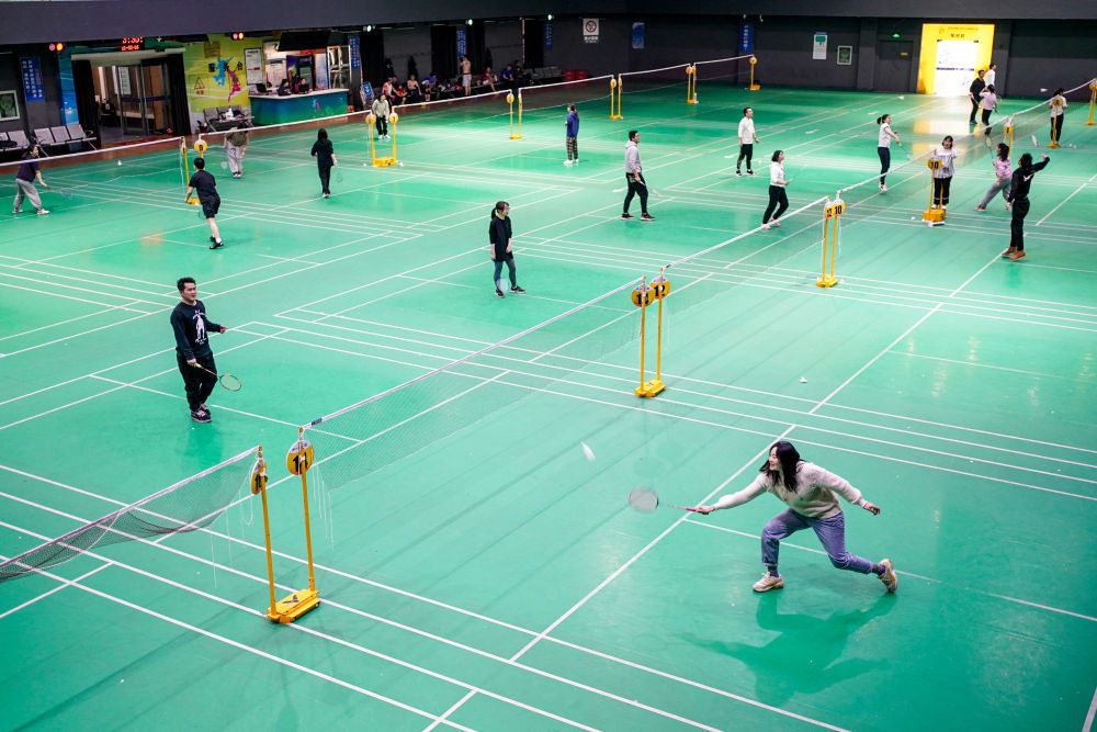 2021年2月16日,市民在南京五臺山體育中心羽毛球館內打羽毛球。新華社記者 李博 攝