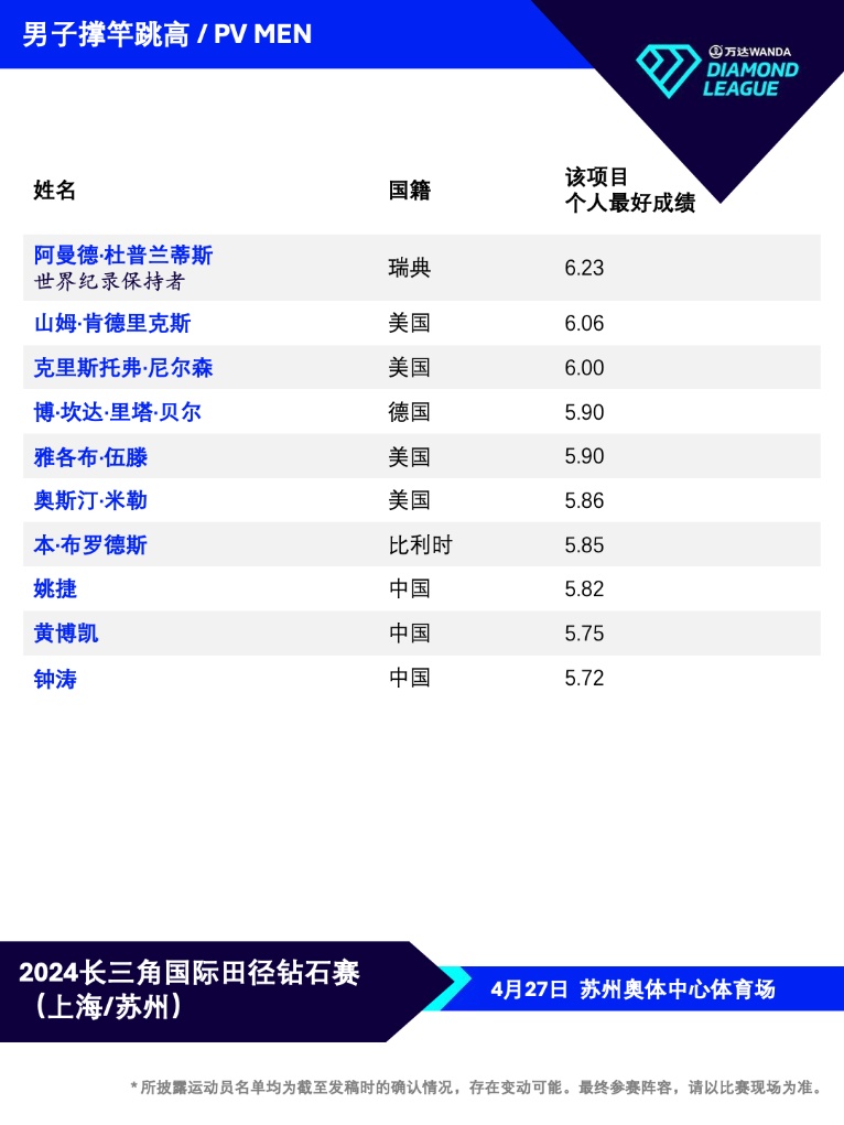 2024長三角國際田徑鉆石賽