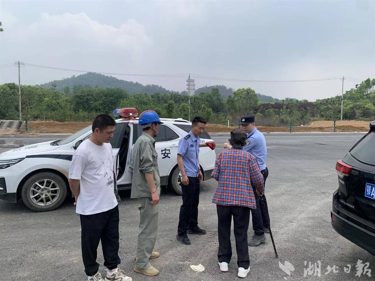 該院工程事業部主任萬琪介紹,上午9點多時,一行人正在江夏區環山綠道附近陳祥大老屋東300多米的位置,對大健康產業園220KV夏岳一二回遷改施工現場開展日常現場巡查。巡查時,一行人看到了一位上身穿紅藍格子襯衫、下身穿黑色褲子、白色運動鞋的婆婆,只見婆婆手里拿著拐杖,臉色異常憔悴,一個人迷茫地坐在路邊。