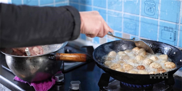 工行宿舍里,空氣中炸丸子的香味陣陣飄來、勾人味蕾……隔窗望去,丸子在油鍋中翻滾著,藍色焰火跳動著。看見李智橋正在檢查燃氣管道,居民熱絡招呼道:“快來嘗嘗我做的丸子,剛出鍋還熱乎呢!”